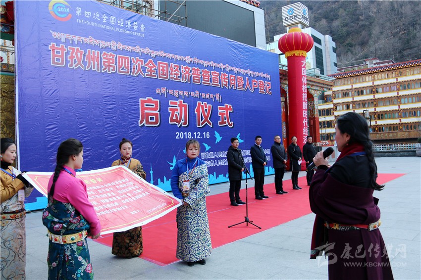 本網(wǎng)訊 “作為一名光榮的第四次全國(guó)經(jīng)濟(jì)普查普查員,我莊嚴(yán)宣誓:忠于職守,依法開(kāi)展經(jīng)濟(jì)普查,視數(shù)據(jù)質(zhì)量為生命,遵守保密紀(jì)律……”這是12月16日在康定情歌廣場(chǎng),甘孜州第四次全國(guó)經(jīng)濟(jì)普查宣傳月暨入戶登記啟動(dòng)儀式上,來(lái)自康定市普查員周莉代表全州經(jīng)濟(jì)普查指導(dǎo)員、普查員所作的莊嚴(yán)宣誓。康定藍(lán)逸高原食品有限公司左蓉代表全州企業(yè)作了配合好普查表態(tài)發(fā)言。