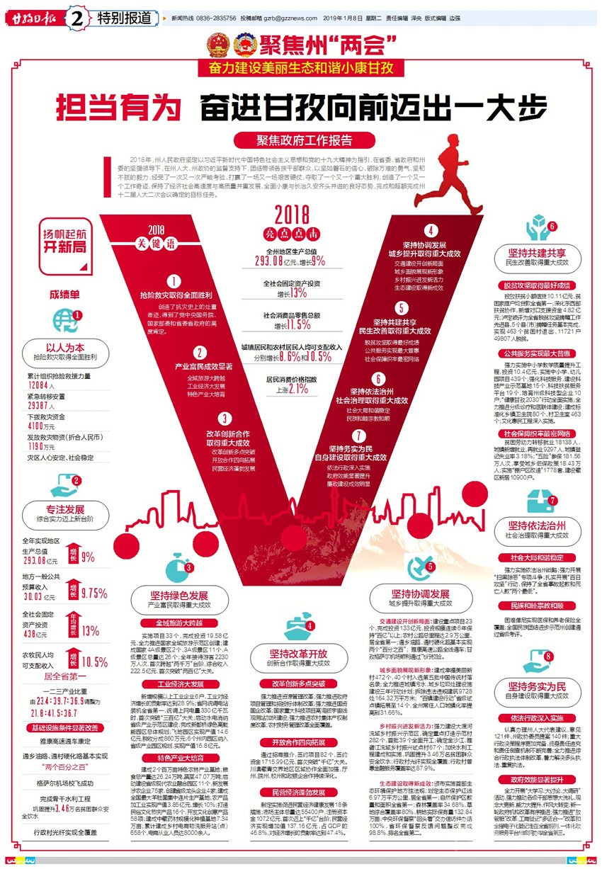 州人民政府州長(zhǎng)肖友才代表州政府作工作報(bào)告。《政府工作報(bào)告》由三部分組成:2018年工作回顧;2019年主要目標(biāo);2019年重點(diǎn)工作。