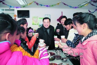胡昌升說,希望所有的孩子們好好學(xué)習(xí),一定要聽老師的話,讓學(xué)習(xí)更好,讓身體更好;一定要聽愛心爸爸、愛心***話,讓自己的思想更好,德智體美勞全面發(fā)展,讓我們共同舉杯,祝各位同學(xué)新年有新進(jìn)步,祝大家新年快樂,扎西德勒!