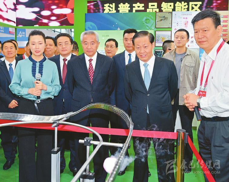9月5日,全國政協(xié)副主席邵鴻,省委書記、省人大常委會主任彭清華及參會嘉賓參觀科博會展館,了解科技創(chuàng)新成果和轉(zhuǎn)化應用情況。 歐陽杰 攝