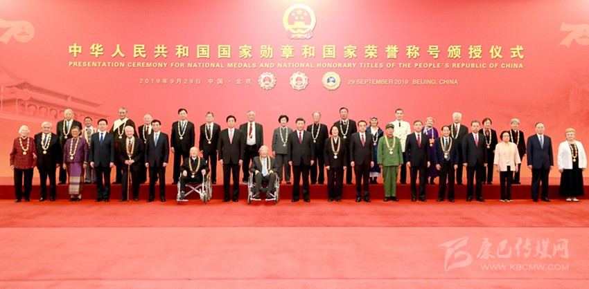 中央黨政軍群有關(guān)部門和北京市負責同志,國家勛章和國家榮譽稱號獲得者及其親屬代表、所在單位代表,八一勛章獲得者、全國先進模范人物代表,有關(guān)國家駐華使節(jié),各界干部群眾代表等約1000人參加頒授儀式。