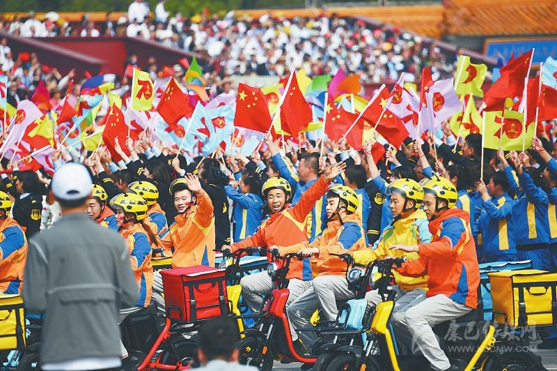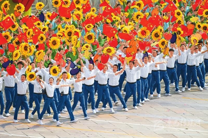 群眾游行中的美好生活方陣。 新華社記者劉軍喜攝