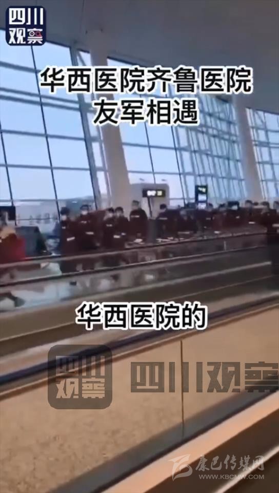 2月7日,四川大學(xué)華西醫(yī)院和山東大學(xué)齊魯醫(yī)院的援助隊(duì)在武漢天河機(jī)場(chǎng)相遇,兩隊(duì)醫(yī)生護(hù)士隔空呼喊“加油”。據(jù)悉,他們將共同接管武漢大學(xué)人民醫(yī)院東院區(qū)。