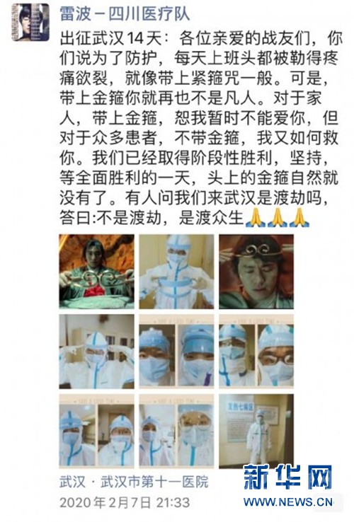 據(jù)雷波介紹,他所在的四川第一批援助湖北醫(yī)療隊(duì)的醫(yī)護(hù)人員都是各大醫(yī)院的中堅(jiān)力量,出生于上世紀(jì)70年代末至80年代中期的比較多。這代人應(yīng)該都看過(guò)周星馳的電影,應(yīng)該對(duì)《大話西游》比較熟悉,能產(chǎn)生共鳴。
