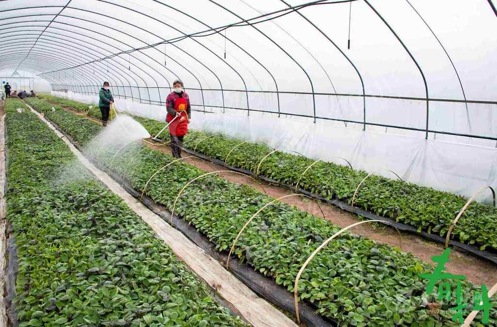 閬中市彭城鎮(zhèn)五谷臺(tái)村,村民在精心管護(hù)蔬菜,把菜苗從薄膜里“掏出來(lái)”。