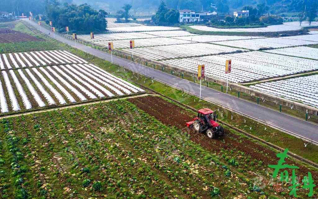 閬中市彭城鎮(zhèn)五谷臺(tái)村,機(jī)械正在菜地里作業(yè),開溝起壟施底肥一氣呵成。