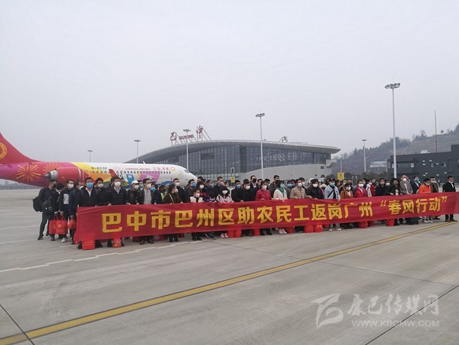 2月26日,巴中恩陽(yáng)機(jī)場(chǎng)首班農(nóng)民工返崗包機(jī)飛赴廣州。