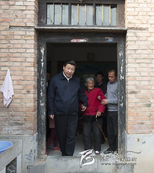 3月17日,習(xí)近平在東壩頭鄉(xiāng)張莊村看望85歲老人張景枝。 新華社記者李學(xué)仁攝