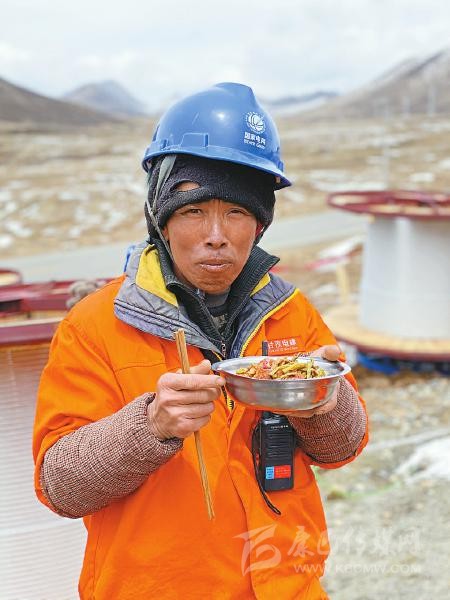 “5分鐘不吃完,飯菜就全涼了。”一位施工人員說,在海拔4000米以上的施工一線,他們已經(jīng)習(xí)慣了這樣的吃飯速度。