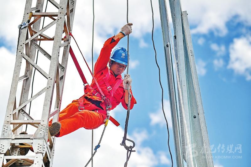 到達(dá)施工現(xiàn)場,組塔工作也是十分艱難,鐵塔結(jié)冰,僅登塔時間便多出一倍,而作業(yè)時間每次不能超過半小時,還要隨時面臨大風(fēng)、大雨、冰雹等天氣,導(dǎo)致工期推進速度較平原地區(qū)慢一倍時間。“為了趕在6月20日完成任務(wù),我連每天與女兒視頻的時間都省了,全力投入工作中。”項目部負(fù)責(zé)導(dǎo)線展放的電力工人楊彪說。