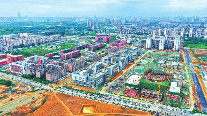 8月3日,鳥瞰成都龍泉驛區(qū)成都大學(xué)校內(nèi)的在建大運村。該項目21個新建單體中,除藝術(shù)中心外,其余20個新建單體主體結(jié)構(gòu)施工已完成,進(jìn)入裝飾裝修階段。