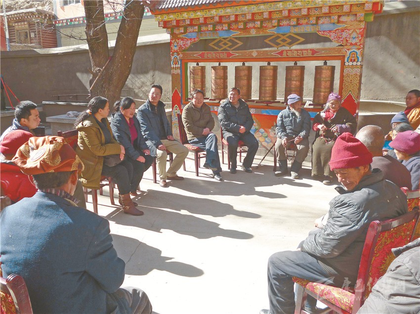 在示范創(chuàng)建中,甘孜把民族團(tuán)結(jié)進(jìn)步創(chuàng)建“八進(jìn)”作為重要抓手和載體,即進(jìn)機(jī)關(guān)、進(jìn)鄉(xiāng)鎮(zhèn)、進(jìn)村(社區(qū))、進(jìn)企業(yè)、進(jìn)學(xué)校、進(jìn)寺院、進(jìn)軍營、進(jìn)市場。近年來,各縣(市)創(chuàng)建辦依據(jù)當(dāng)?shù)毓ぷ鲗嶋H、不同場所特點開展豐富多樣的主題宣傳教育活動,推動創(chuàng)建工作實現(xiàn)“橫、縱、深、廣”,形成了各級黨委、政府以及各部門、全社會參與示范創(chuàng)建的良好局面。