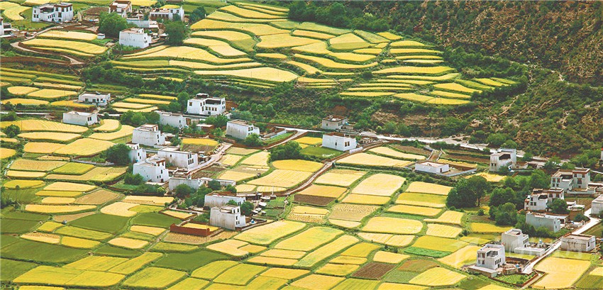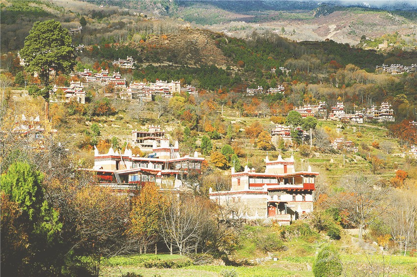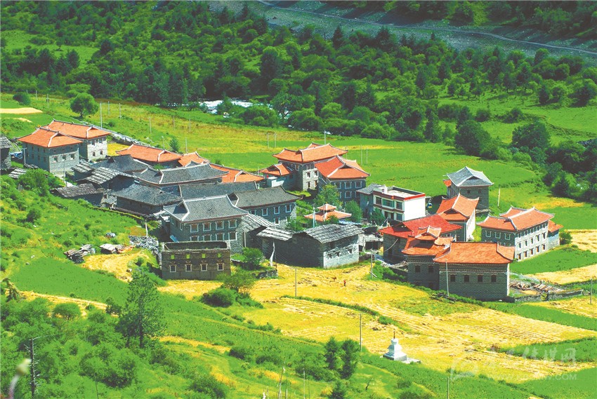 藏寨坐落綠海中。