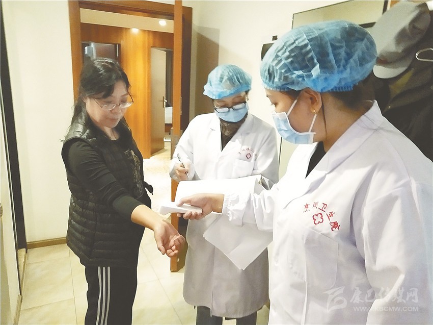 醫(yī)務人員到演職人員房間測量體溫。