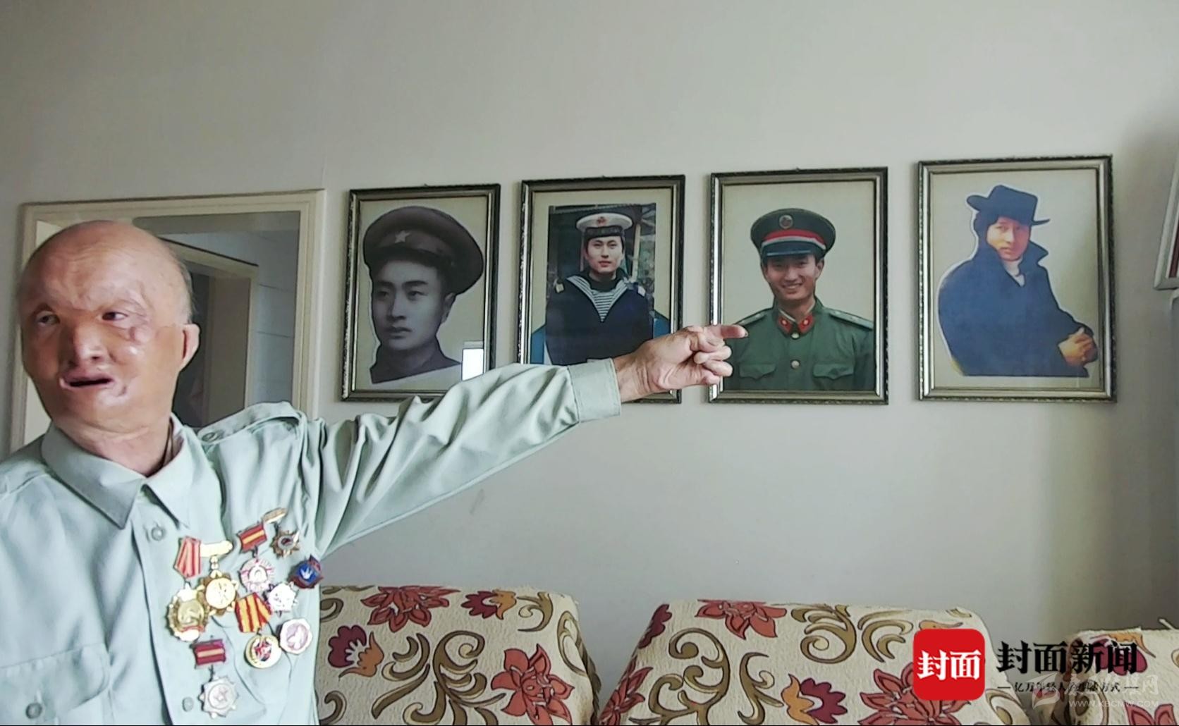 初見(jiàn)這位老人,他的面容讓人印象深刻。69年前那個(gè)冬天的朝鮮戰(zhàn)場(chǎng)上,是他一輩子最難忘的經(jīng)歷。年僅20歲的他遭遇敵機(jī)投擲的凝固汽油彈,導(dǎo)致面部、手部嚴(yán)重?zé)齻?,造成一?jí)傷殘。