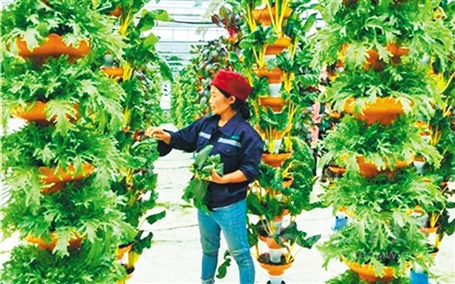 蔬菜可以長在一兩米高的架子上,南瓜都是彩色的,還有各種各樣以前沒見過的蔬菜,剛到昭覺縣四開鄉(xiāng)涪昭現(xiàn)代農業(yè)產業(yè)園打工的阿亞芋驚嘆不已?!拔曳N了10多年蔬菜,知道我們這里種菜就那么幾個品種,真的不知道還能種出這么多不認識的蔬菜?!卑営笳f,她在這里打工一年多,學到不少知識和技術,長了見識。