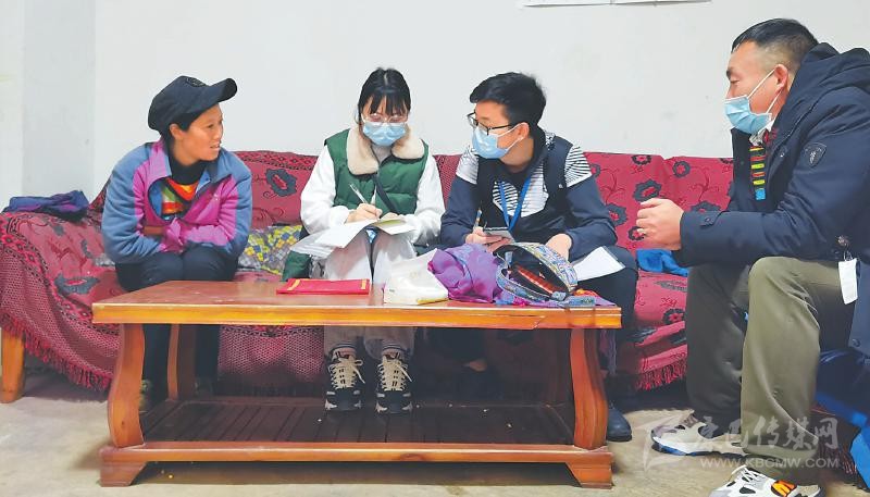 10月28日,喜德縣評估檢查隊隊員(右邊兩位)入戶調(diào)查。 四川日報全媒體記者 王代強(qiáng) 攝