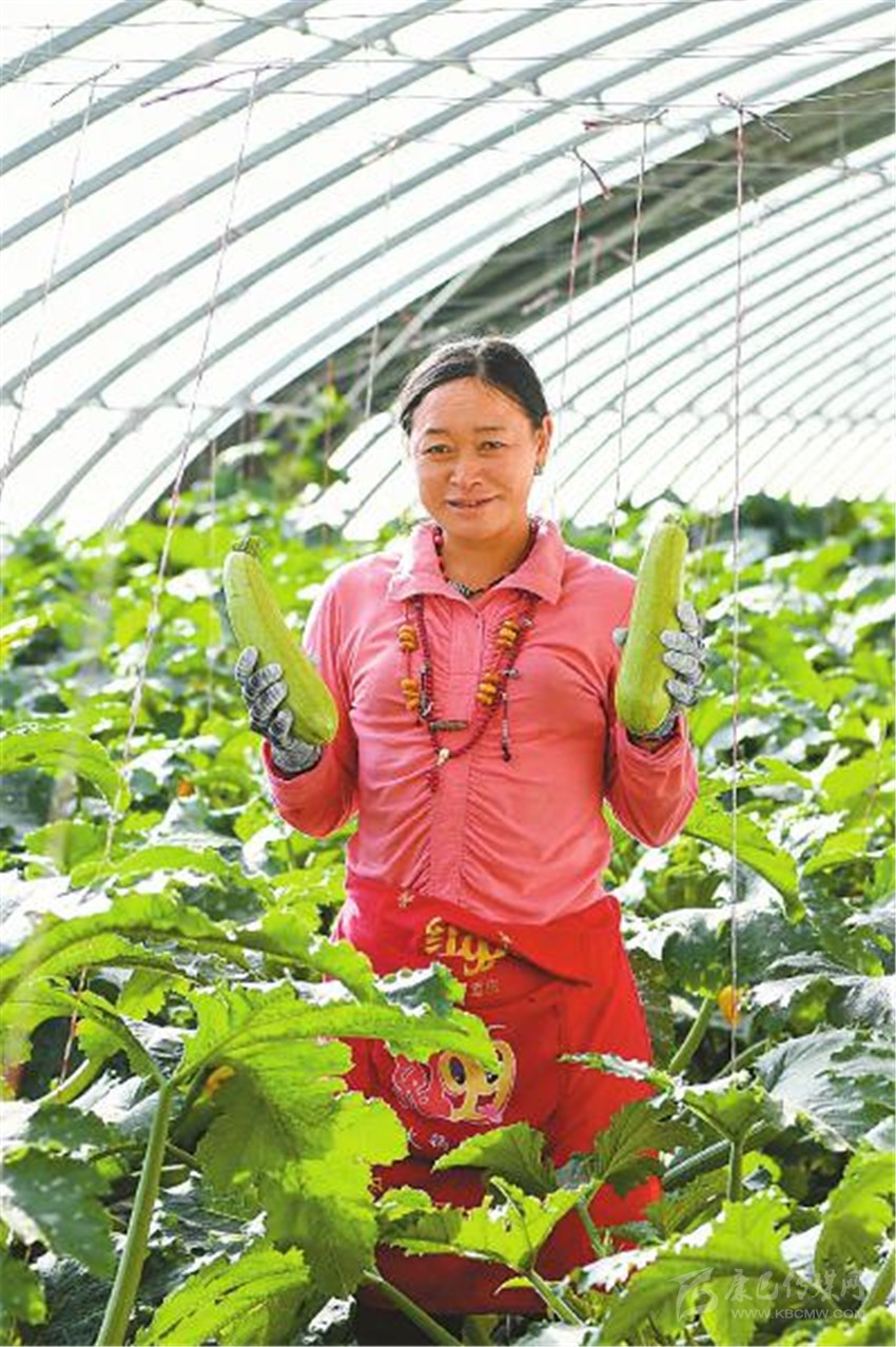 近日,在鄧瑪農(nóng)業(yè)觀光產(chǎn)業(yè)科技示范園內(nèi)工作的村民展示剛摘下的西葫蘆。 四川日?qǐng)?bào)全媒體記者 楊樹 攝