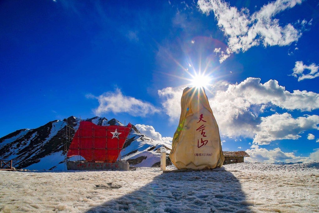 紅軍長征翻越夾金山紀念地被白雪覆蓋的石碑