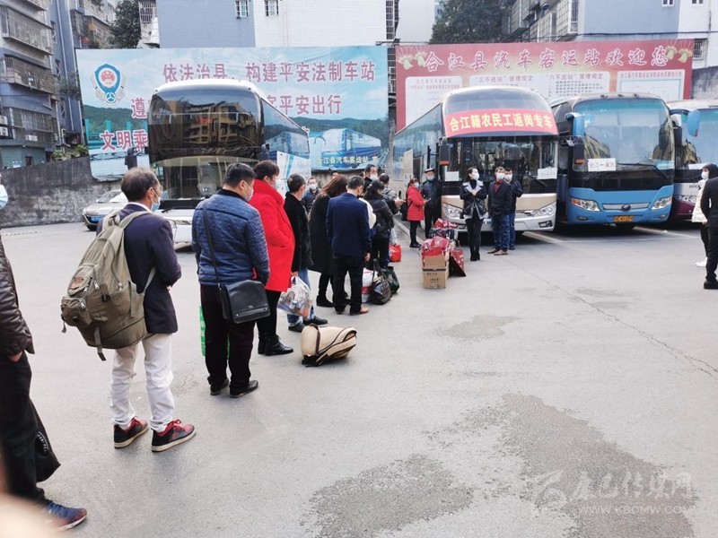 四川新聞網(wǎng)成都2月21日訊(記者 李丹)2月19日早上8時(shí),在四川省瀘州市合江縣客運(yùn)中心,全縣首趟農(nóng)民工返崗務(wù)工專車正要出發(fā)。90名合江籍農(nóng)民工在接受體溫檢測和手續(xù)檢查后,登上合江首列赴粵返崗專車,“點(diǎn)對(duì)點(diǎn)、一站式”到達(dá)深圳龍崗,奔赴各自的崗位復(fù)工。
