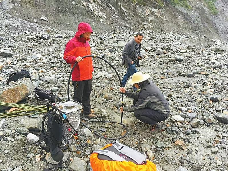 劉巧(左)在海螺溝冰川工作。