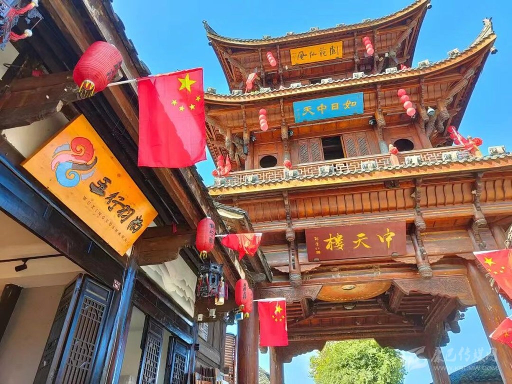 在南充古城閬中,以中天樓為核心鋪開(kāi)的四條街道,全部被五星紅旗裝點(diǎn)開(kāi)來(lái),甚至部分街段上空鋪上了“紅旗?!薄P鲁堑闹鞲傻?,也掛上了一面面五星紅旗,站在街頭放眼望去,鮮艷的五星紅旗成為一道最靚麗的風(fēng)景線(xiàn)。