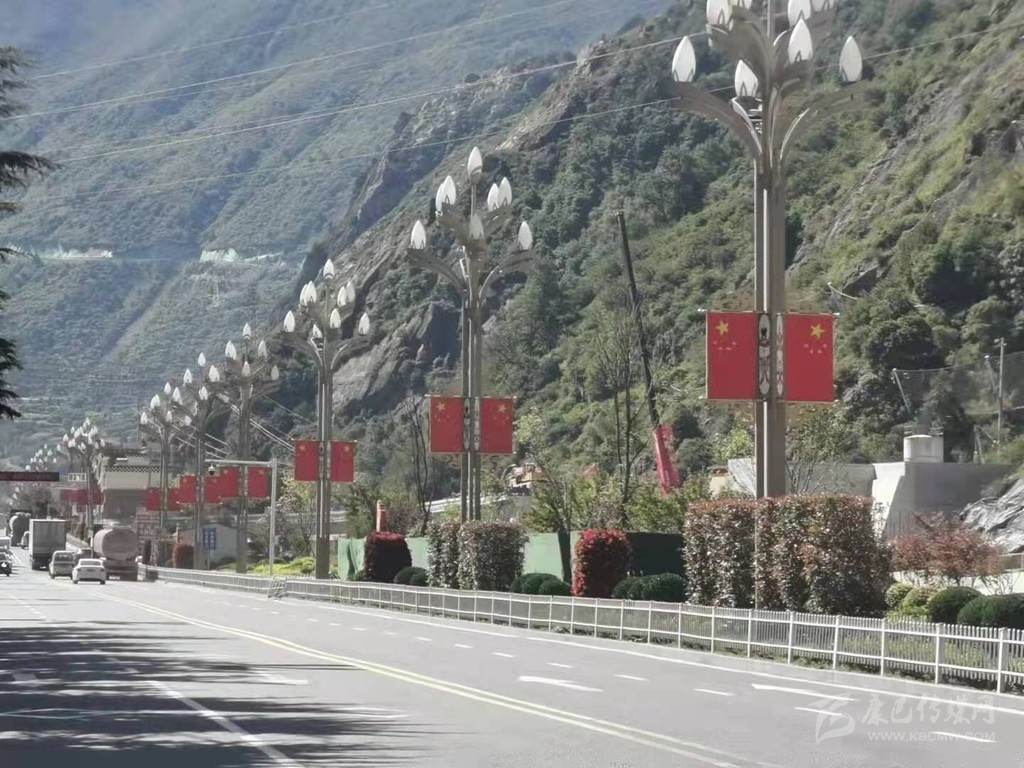 在樂(lè)山市,為營(yíng)造喜慶、熱烈、歡樂(lè)、祥和的節(jié)日氛圍,中心城區(qū)嘉定路、柏楊路等多條主干道,以及樂(lè)山岷江一橋和二橋共計(jì)1217柱燈桿上,懸掛了2000多面國(guó)旗,換上“紅裝”后的街道,在藍(lán)天的映襯下顯得格外美麗。
