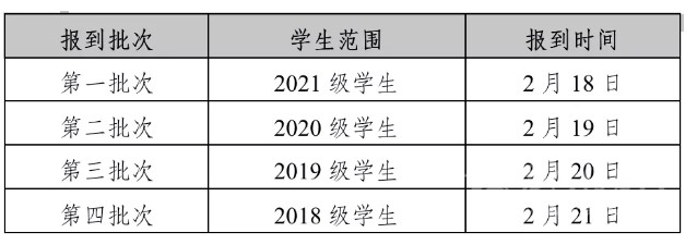 全體學生于2月19日、20日返校報到,20日各書院輔導員組織學生進行收假集中點到,上報未返校學生名單至學務部。2月21日正式行課。