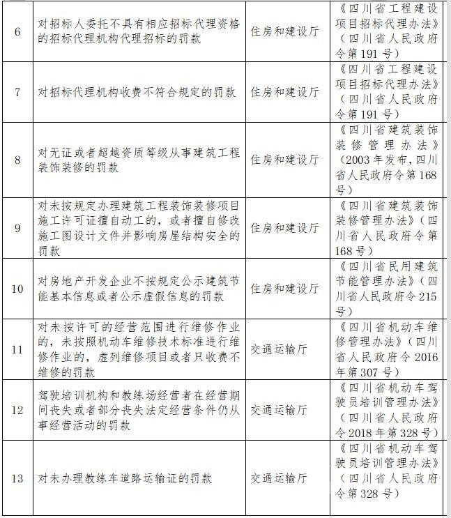 匯總所有意見建議后,《四川省人民政府關(guān)于取消和暫停行使一批罰款等事項(xiàng)的決定(征求意見稿)》決定取消和暫停行使25項(xiàng)罰款事項(xiàng),其中取消19項(xiàng),暫停行使6項(xiàng)。罰款事項(xiàng)取消和暫停行使后,依照法定程序修訂相關(guān)省政府規(guī)章。