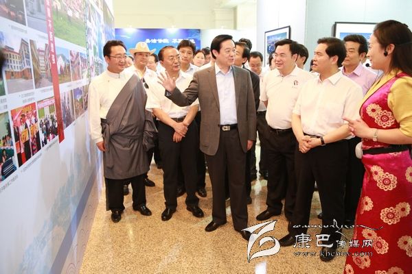 6月8日上午10時,劉奇葆、王正偉來到民族文化宮,首先走進(jìn)四川甘孜藏區(qū)發(fā)展成就暨旅游圖片展現(xiàn)場。這里,展示的是甘孜藏區(qū)經(jīng)濟社會發(fā)展成就、自然風(fēng)光、歷史文化、民族風(fēng)情、田園藏寨等方面內(nèi)容的圖片。一幅幅圖片,一個個場景,劉奇葆都非常熟悉。在四川工作期間,他曾十幾次奔赴甘孜藏區(qū)考察,足跡遍布全州18個縣。劉奇葆仔細(xì)觀看展示圖片,并不時詢問交通通信、優(yōu)勢產(chǎn)業(yè)等發(fā)展情況以及民生改善的情況。劉奇葆說,甘孜山川秀美,民族風(fēng)情濃郁,是一方充滿生機和活力的土地,希望甘孜立足自身實際,大力發(fā)展農(nóng)牧業(yè)和文化旅游業(yè),大力加強生態(tài)建設(shè)和環(huán)境保護(hù),大力改善民生,努力走出藏區(qū)科學(xué)發(fā)展、跨越發(fā)展之路。