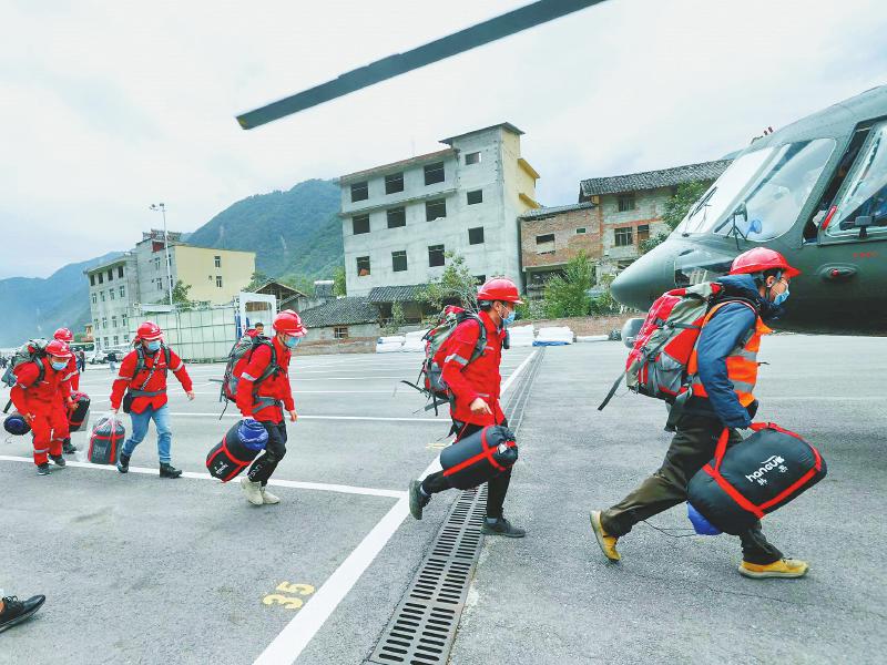 為切實(shí)做好抗震救災(zāi)工作,“9·5”瀘定地震發(fā)生后不到10分鐘,應(yīng)急管理廳即派出先期工作組趕往震區(qū)現(xiàn)場(chǎng)掌握受災(zāi)情況、指揮搶險(xiǎn)救災(zāi),緊急調(diào)撥救災(zāi)物資,協(xié)同開辟“空中綠色通道”和救援航線,在災(zāi)區(qū)實(shí)施空中偵查、搶救傷員、人員轉(zhuǎn)移、物資投送等救援行動(dòng)。