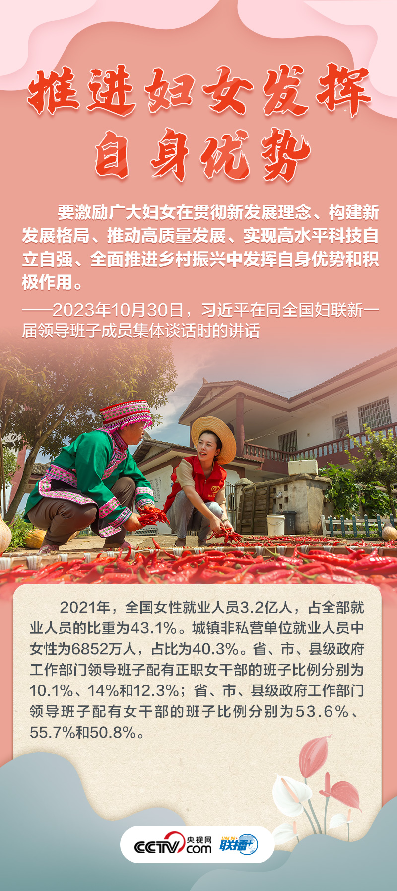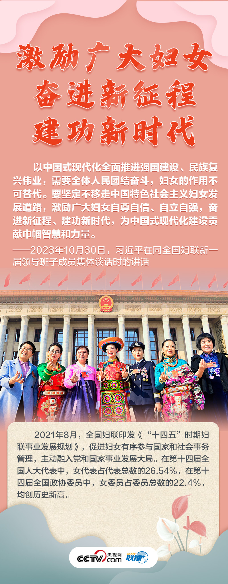 如何做好新時(shí)代新征程上婦女兒童工作,凝聚起中國(guó)式現(xiàn)代化建設(shè)的巾幗力量?央視網(wǎng)《聯(lián)播+》特推出海報(bào),與您一起了解總書(shū)記最新指示,以及近年來(lái)婦女事業(yè)和婦聯(lián)工作取得的非凡成就。