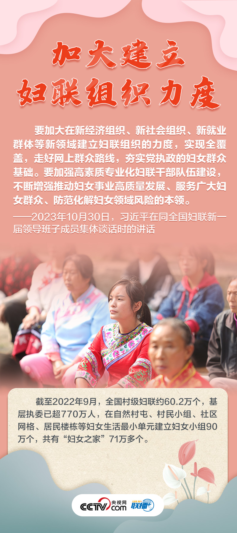 聯(lián)播+“婦聯(lián)是黨和政府聯(lián)系婦女群眾的橋梁紐帶?!?0月30日,習(xí)近平總書(shū)記同全國(guó)婦聯(lián)新一屆領(lǐng)導(dǎo)班子成員集體談話并發(fā)表重要講話,高度肯定巾幗力量,并為新形勢(shì)下婦女事業(yè)和婦聯(lián)工作發(fā)展指明方向。