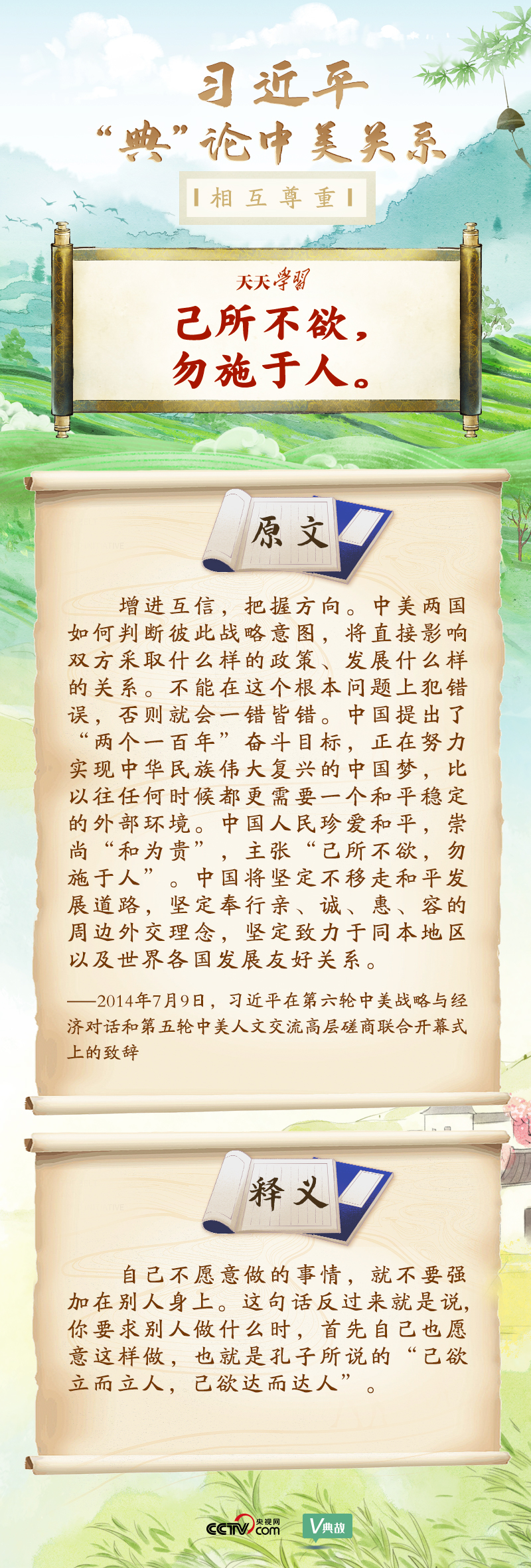 黨的十八大以來,習近平主席就中美關系發(fā)表了一系列重要講話。他站在時代高度分析、研判中美關系現(xiàn)狀及發(fā)展趨勢,并引經據典為發(fā)展中美關系指出正確方向。這些論述蘊含深刻的戰(zhàn)略思維和政治智慧,具有重大現(xiàn)實意義和深遠歷史意義。央視網《天天學習》與您一起深刻領會。