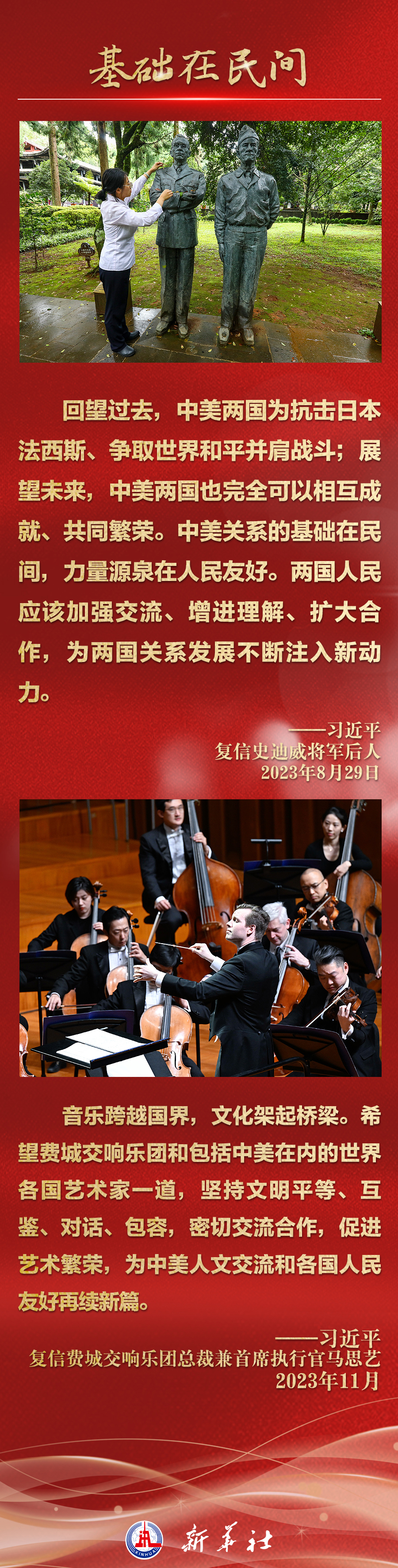 今年以來,從在京會見美國各界人士,到向“鼓嶺緣”中美民間友好論壇等活動致賀信,再到復信美國華盛頓州“美中青少年學生交流協(xié)會”、史迪威將軍后人、飛虎隊老兵等友好人士,習近平主席同美國各界真摯互動,強調(diào)中美關(guān)系基礎(chǔ)在民間,希望在人民,未來在青年,活力在地方。