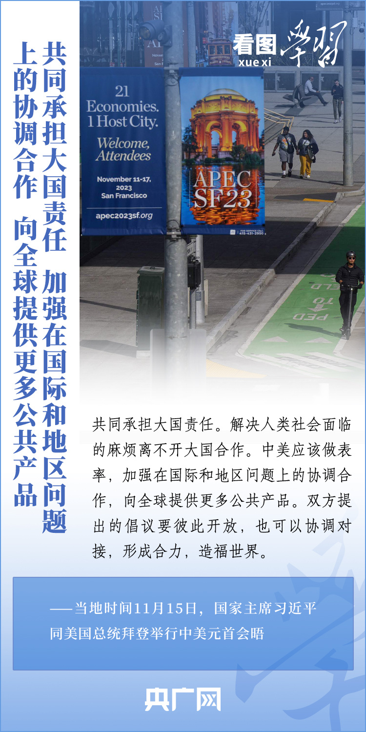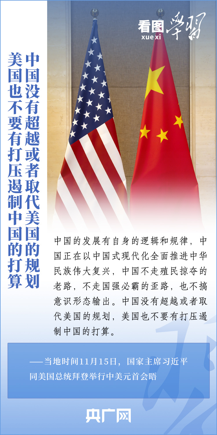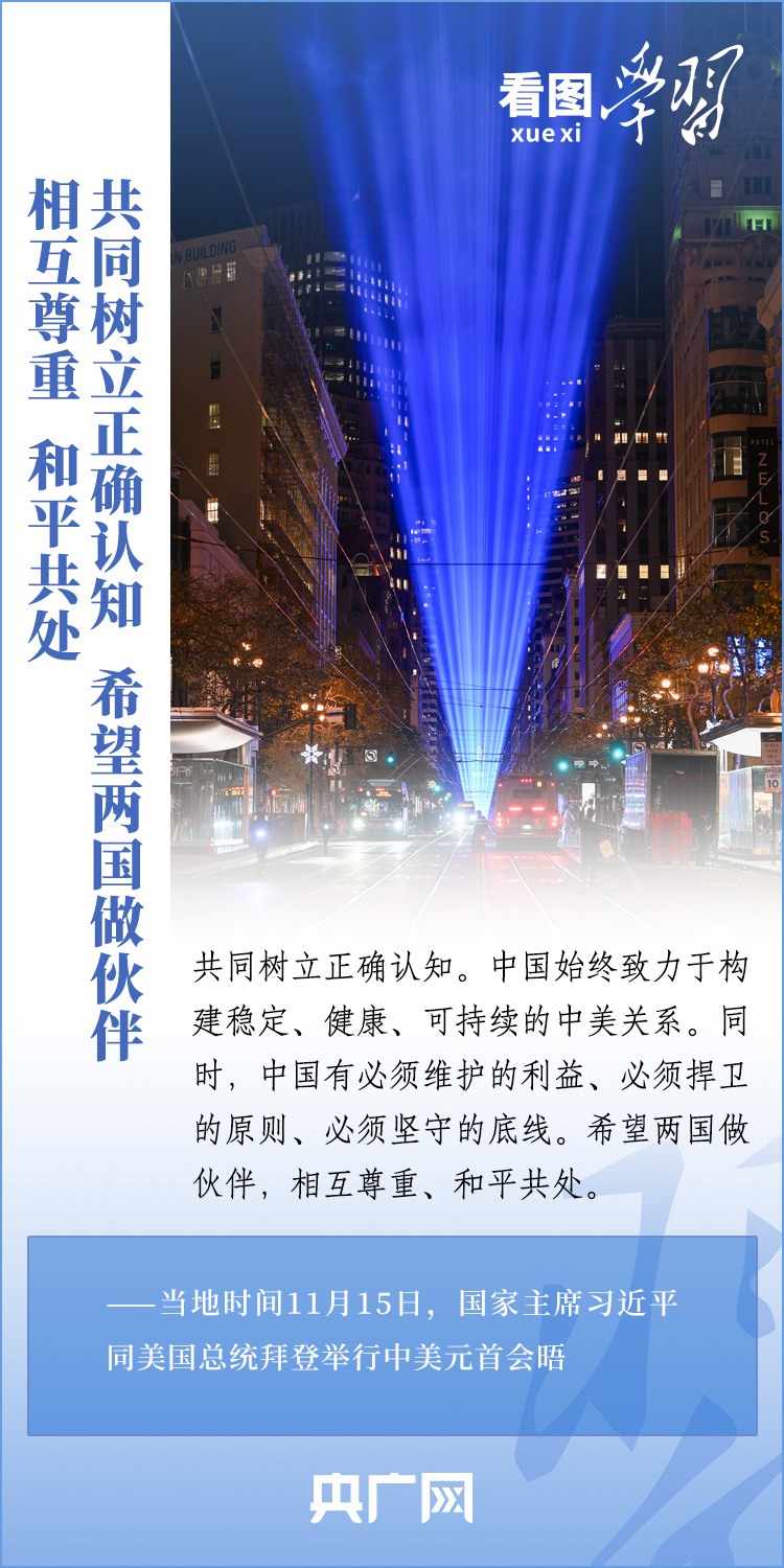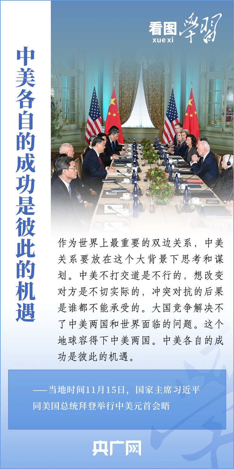 當(dāng)?shù)貢r間11月15日,國家主席習(xí)近平在美國舊金山斐洛里莊園同美國總統(tǒng)拜登舉行中美元首會晤。兩國元首就事關(guān)中美關(guān)系的戰(zhàn)略性、全局性、方向性問題以及事關(guān)世界和平和發(fā)展的重大問題坦誠深入地交換了意見。習(xí)近平主席指出,大國競爭解決不了中美兩國和世界面臨的問題。這個地球容得下中美兩國。中美各自的成功是彼此的機遇。一起來學(xué)習(xí)!