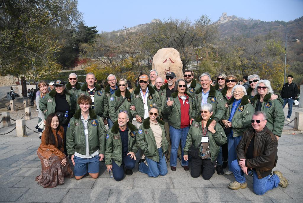 10月29日,飛虎隊(duì)老兵莫耶一行人在北京八達(dá)嶺長(zhǎng)城合影留念。當(dāng)日,美中航空遺產(chǎn)基金會(huì)訪華代表團(tuán)成員陸續(xù)抵達(dá)北京。新華社記者任超攝