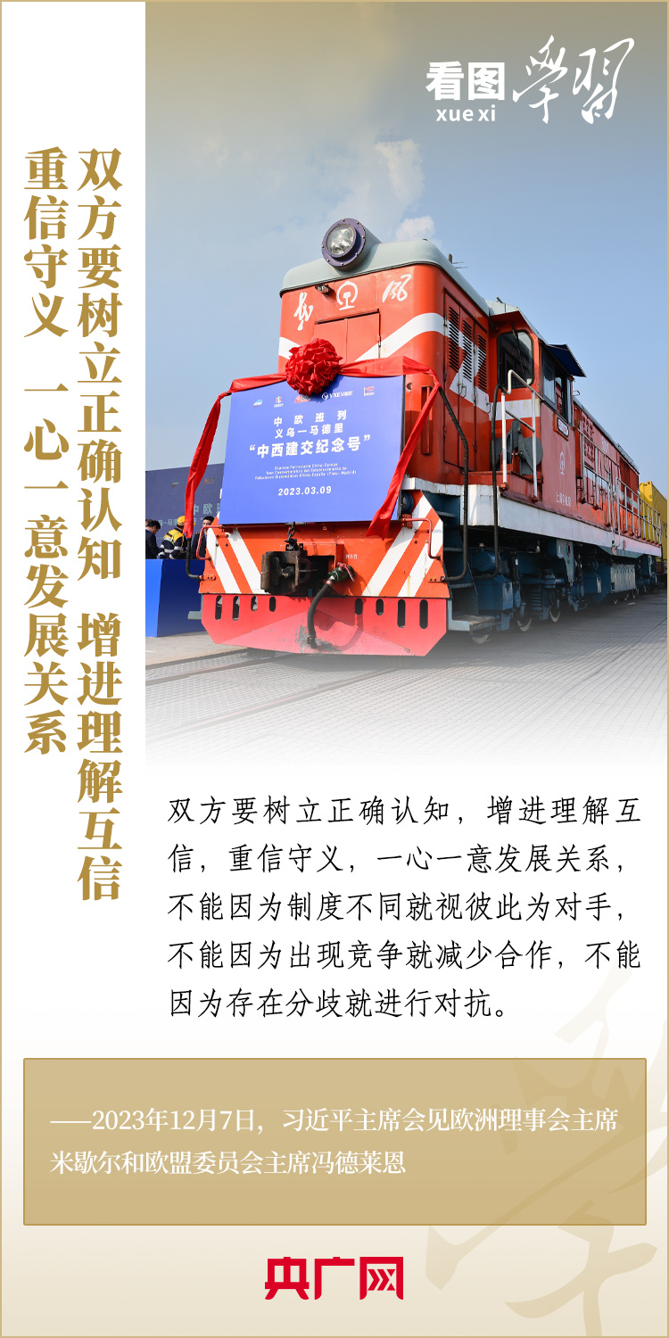 12月7日,國家主席習(xí)近平會(huì)見來華舉行第二十四次中國—?dú)W盟領(lǐng)導(dǎo)人會(huì)晤的歐洲理事會(huì)主席米歇爾和歐盟委員會(huì)主席馮德萊恩,雙方就事關(guān)中歐關(guān)系的戰(zhàn)略性問題,以及中歐各領(lǐng)域?qū)υ捄献鳌㈦p方重點(diǎn)關(guān)切、全球治理、國際和地區(qū)熱點(diǎn)問題等深入坦誠交換看法,并就一系列問題達(dá)成重要共識(shí)。今年是中歐建立全面戰(zhàn)略伙伴關(guān)系20周年,習(xí)主席強(qiáng)調(diào),中歐關(guān)系具有戰(zhàn)略意義和世界影響,關(guān)乎世界和平、穩(wěn)定、繁榮。一起來學(xué)習(xí)!