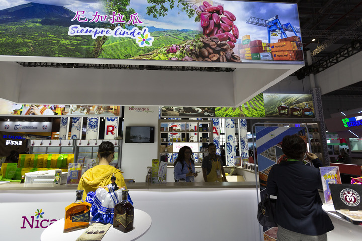 2023年11月6日在第六屆進博會國家展拍攝的尼加拉瓜展臺。