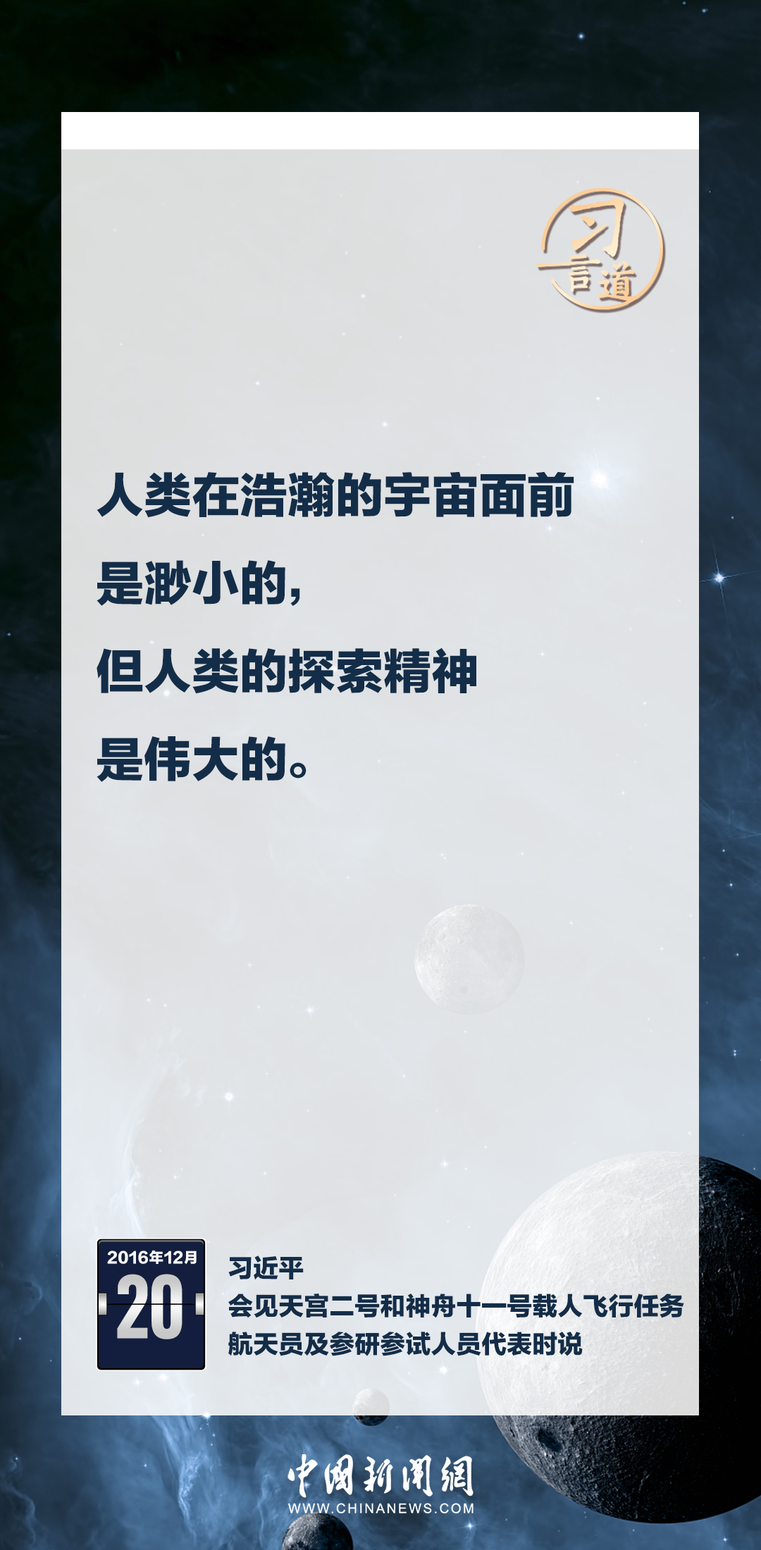 建設(shè)航天強(qiáng)國要靠一代代人接續(xù)奮斗。在不同場合,習(xí)近平總書記頻頻提及航天精神,激勵(lì)一代代中國人不斷奮進(jìn)、筑夢太空。