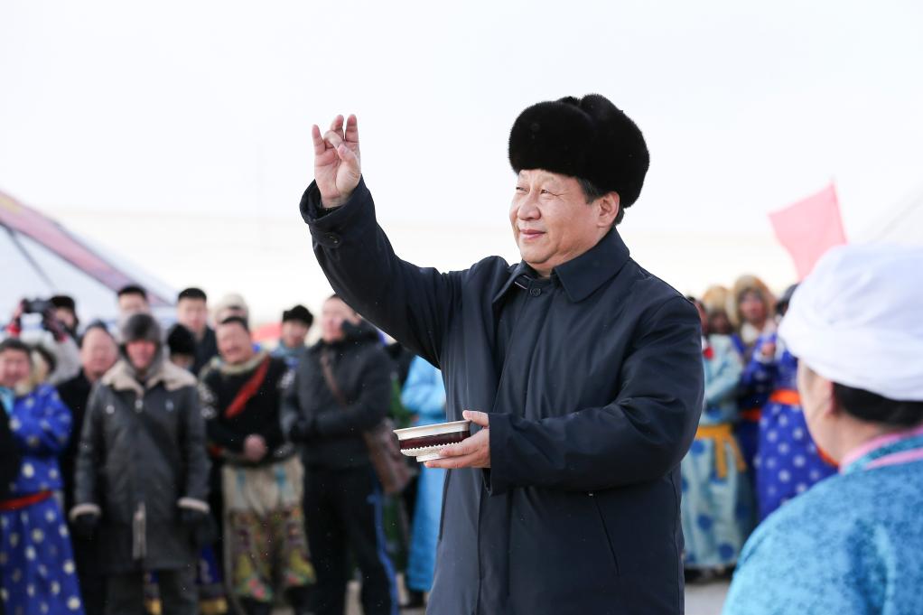 ??2014年1月,習(xí)近平總書記在內(nèi)蒙古調(diào)研看望慰問各族干部群眾。新華社記者 龐興雷 攝