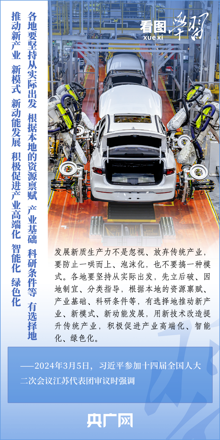 3月5日,十四屆全國(guó)人大二次會(huì)議正式開(kāi)幕。5日下午,習(xí)近平總書記參加他所在的江蘇代表團(tuán)審議時(shí)強(qiáng)調(diào),要牢牢把握高質(zhì)量發(fā)展這個(gè)首要任務(wù),因地制宜發(fā)展新質(zhì)生產(chǎn)力。發(fā)展新質(zhì)生產(chǎn)力不是忽視、放棄傳統(tǒng)產(chǎn)業(yè),要防止一哄而上、泡沫化,也不要搞一種模式。一起來(lái)學(xué)習(xí)!