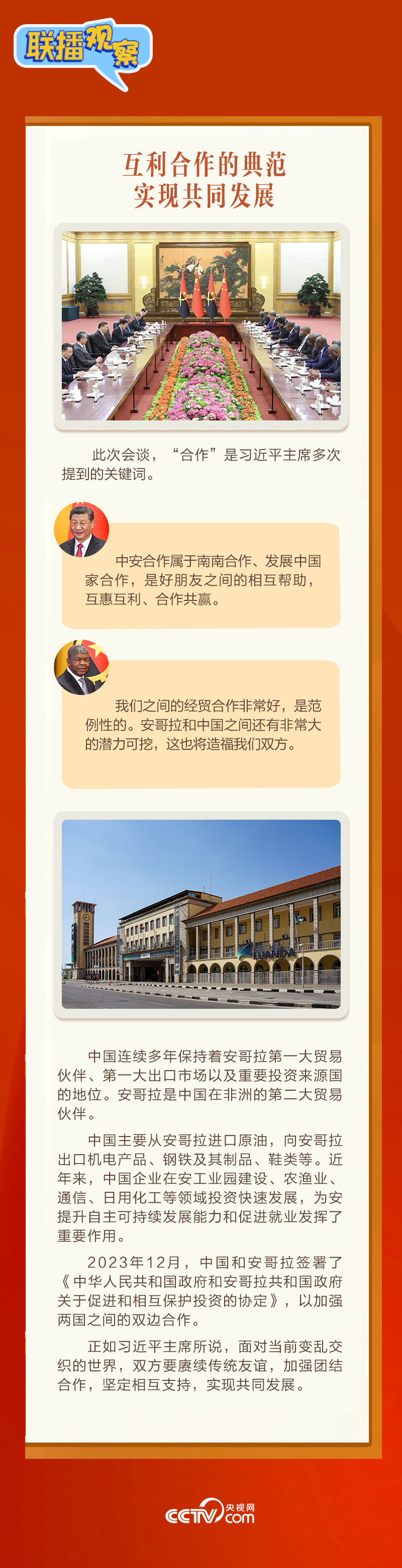 聯(lián)播+3月15日,習(xí)近平主席在人民大會堂同來華進(jìn)行國事訪問的安哥拉總統(tǒng)洛倫索舉行會談。會談中,習(xí)主席稱洛倫索總統(tǒng)為“中國人民的老朋友”,評價中安關(guān)系“歷經(jīng)國際風(fēng)云變幻考驗,實實在在造福了兩國人民”。