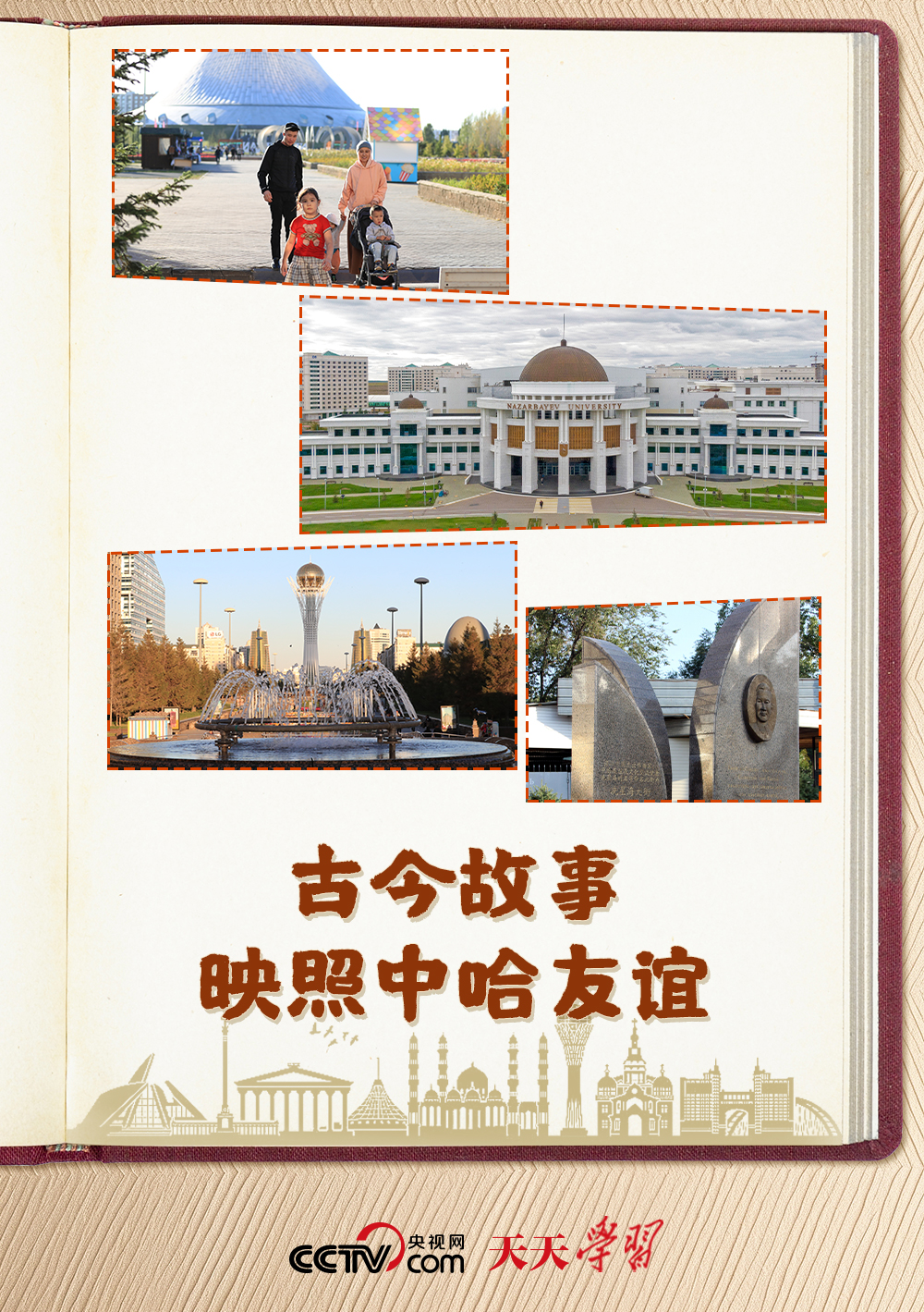 2013年9月,習(xí)近平主席在哈薩克斯坦納扎爾巴耶夫大學(xué)發(fā)表重要演講。正是在這次演講中,習(xí)主席首次提出了建設(shè)“絲綢之路經(jīng)濟(jì)帶”倡議,按下“一帶一路”啟動(dòng)鍵。其間,習(xí)主席還講述了中國(guó)著名音樂(lè)家冼星海、哈薩克斯坦小伙魯斯蘭等多個(gè)中哈友誼故事。