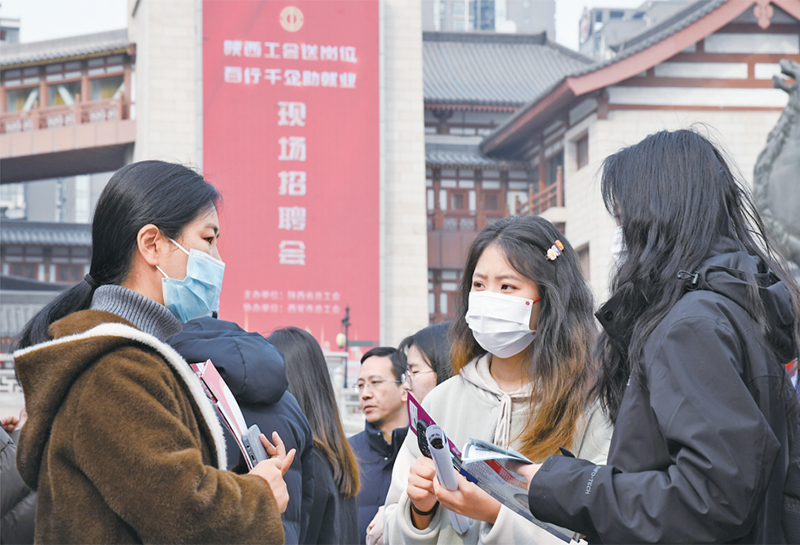 2024年3月6日,由陜西省總工會(huì)舉辦的2024年陜西工會(huì)“春送崗位”就業(yè)服務(wù)月啟動(dòng)儀式在西安舉行。與啟動(dòng)儀式同期舉辦的現(xiàn)場(chǎng)招聘會(huì)吸引約200家用人單位參加,提供崗位超過5000個(gè)。圖為當(dāng)日求職者在現(xiàn)場(chǎng)招聘會(huì)上與企業(yè)工作人員交流。 新華社記者 張博文/攝