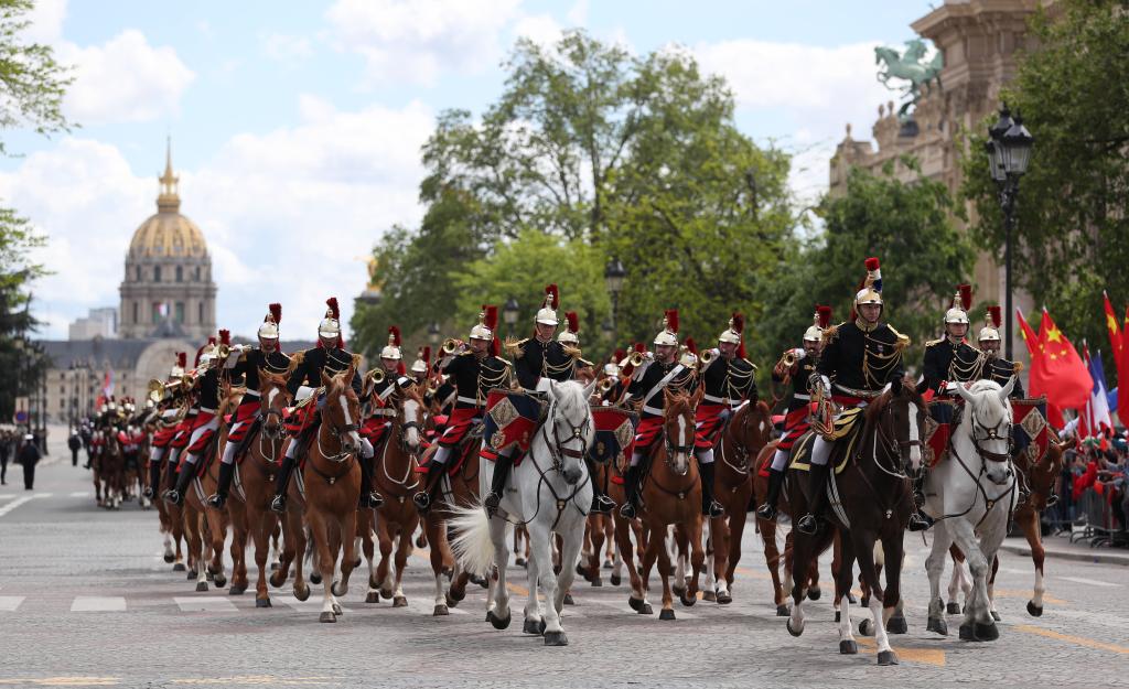 ??五月的巴黎,風(fēng)和景明。塞納河畔,榮軍院金色穹頂熠熠生輝,五星紅旗和藍(lán)白紅三色旗迎風(fēng)飄揚(yáng)。