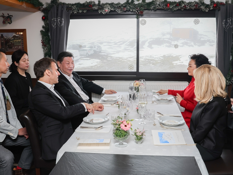 ??前一天,雙方發(fā)表4份聯(lián)合聲明,簽署綠色發(fā)展、航空、農(nóng)業(yè)食品、商務(wù)、人文等領(lǐng)域近20項(xiàng)雙邊合作文件。此時(shí)在春雪紛飛、云海浩渺中,兩國(guó)元首“不打領(lǐng)帶”溝通交流,加深彼此理解。此情此景,與兩國(guó)元首2019年的“尼斯夜談”、“豫園茶敘”,2023年的“松園會(huì)晤”,一脈相承。