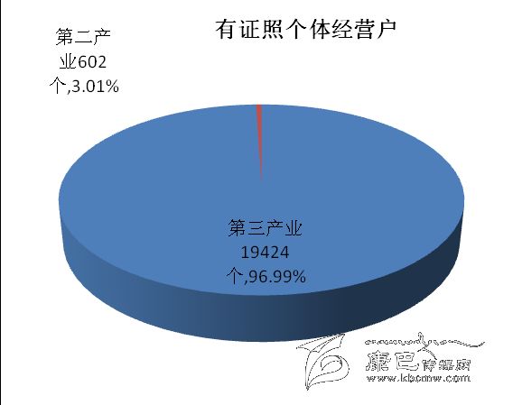 在有證照個(gè)體經(jīng)營(yíng)戶(hù)中,第二產(chǎn)業(yè)占3.01 %;第三產(chǎn)業(yè)占96.99 %。有證照個(gè)體經(jīng)營(yíng)戶(hù)從業(yè)人員中,第二產(chǎn)業(yè)占3.82 %,第三產(chǎn)業(yè)占96.18 %。