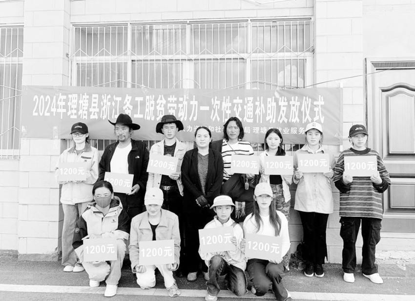 圖為向理塘外出浙江務(wù)工人員發(fā)放交通補助。