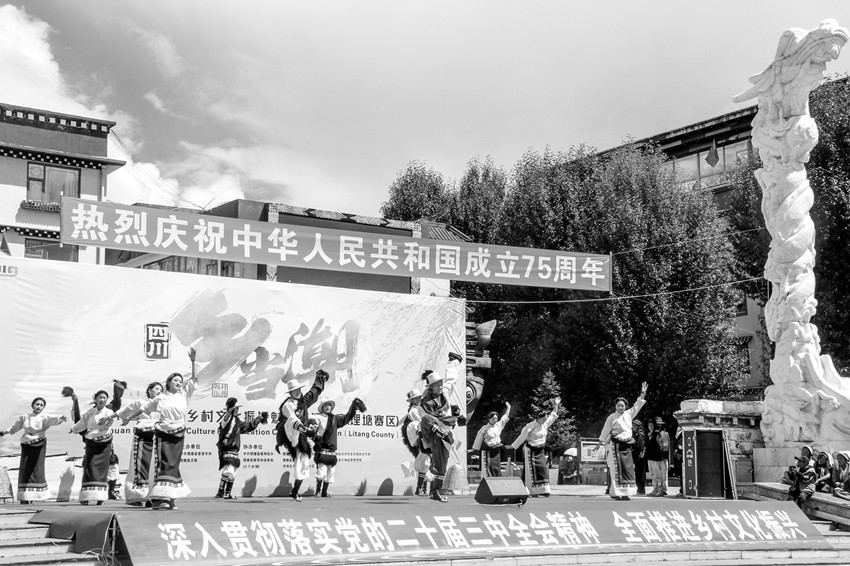 “沒想到平時在村里跳的鍋莊,今天受到了這么多人的歡迎和喜愛,給了我們很大的鼓舞,今后我們還要繼續(xù)跳好鍋莊,并一代代傳承下去。”莫壩鄉(xiāng)下莫壩村的村民仁稱多吉高興地說?!斑@是我畫的家鄉(xiāng),名叫《呷洼中秋夜》?!边韧萼l(xiāng)日里新村的村民貢布介紹了自己的油畫作品,畫家出自鄉(xiāng)野,畫風(fēng)飽含鄉(xiāng)韻,引來一片嘖嘖稱奇。競演大賽上,22個鄉(xiāng)鎮(zhèn)立足自身實際,以各具特色的敘述,為觀眾全景描述了地方文化、特色物產(chǎn)、自然景觀、產(chǎn)業(yè)經(jīng)濟、新風(fēng)新貌等,今日理塘鄉(xiāng)村,處處好風(fēng)光。